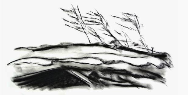 There is also the figurative artist Nick Llewellyn (nickllewellyn.moonfruit.com) who has spent years hill walking and after living in Chile decided to break free from the restrictions of 3D design (furniture/buildings/interiors) and become an artist. “This is me,” he says “this is entirely me, not restricted by client budgets or the physical world. This,” he says pointing at a hill with trees denoted by slashed lines (see Windgrass)“is as figurative as I’ll get.” But why? I ask him. “I prefer to do an image that people can read their own story into. It will trigger a memory in the viewer. Those are the things I like. I love Prunella Clough (www.tate.org.uk/art/artists/prunella-clough-921), Callum Innes (http://www.calluminnes.com/) and Patrick Herron (http://www.tate.org.uk/art/artists/patrick-heron-1278).” The only way he’ll return to the physical restrictions of 3D design are through abstracts sculpture “I may yet return to that.” he grins.