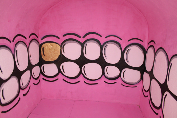 A favourite aspect of this show is the inclusion of street art. In the basement you get to walk into someone’s mouth and pretend to be a Corn Flake courtesy of Sweet Toof’s Untitled. His fun trademark teeth and gums can be spotted painted on buildings in New York and London and in the odd lift. Another street artist Tek 33, has tagged the front of the gallery in The gallery are a bit pissed off that you tagged the front door, which is a clever way to wrap the building in with the work. “We had the same tag on the shutters,” Engelbrecht says, not smiling for the first time. “But within twenty four hours the council had removed it.” It seems that feminism can change women and even change men, but there are some things it can’t change.