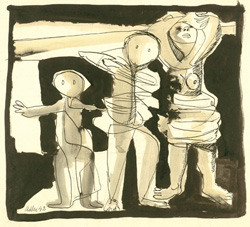 | JANKEL ADLER – Family Group opus 91 1942 pencil ink and wash 15 x 16 1/2 in / 38 x 42 cm Exhibition Gimpel Fils |